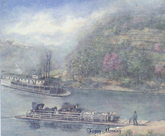 Foggy Morning with The Steamboat Rowena Art by: Fred Thrasher Thrasher's Art Studio 600 Tucker Rd. / Bronston, KY 42518 (606) 561-8767 or 1-800-600-1278
